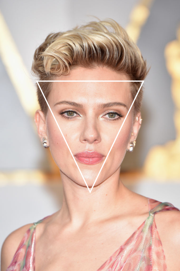 Если вы имеете треугольную форму лица, ваша задача: акцентировать внимание на скулах.